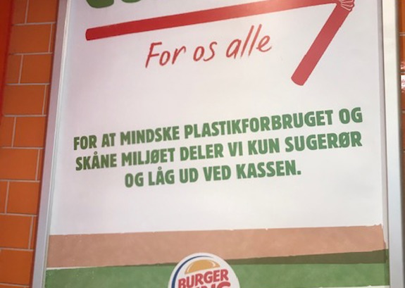 Billedet er fra Burger King i Vanløse, hvor kunden ikke selv kan tage sugerør og låg for at nedbringe plastikforbruget.
